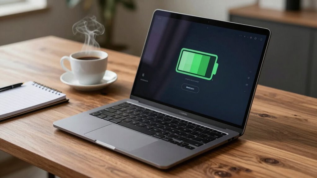 You might notice your battery drains faster than expected, and coincidence plays a role here. Background processes and app activity constantly run without your notice, consuming power. When apps aren’t optimized, they demand more resources, further draining your battery. To improve longevity, regularly close unnecessary background processes and prioritize app optimization, ensuring only essential apps run. This simple step can markedly extend your device’s battery life and keep you powered throughout your workday.