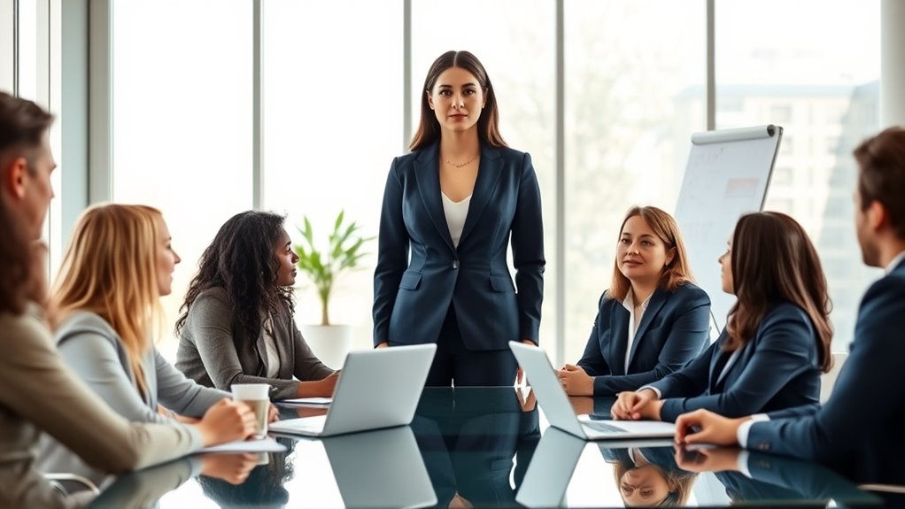 Navigating office politics with integrity means building genuine relationships across all levels, acting transparently, and making choices grounded in ethics. Focus on demonstrating competence, collaborating sincerely, and understanding power dynamics without manipulation. Stay authentic and develop emotional intelligence to handle conflicts thoughtfully. By aligning your actions with core values, you foster trust and respect while advancing your goals. If you keep exploring, you’ll discover more ways to steer workplace influence effectively and ethically.