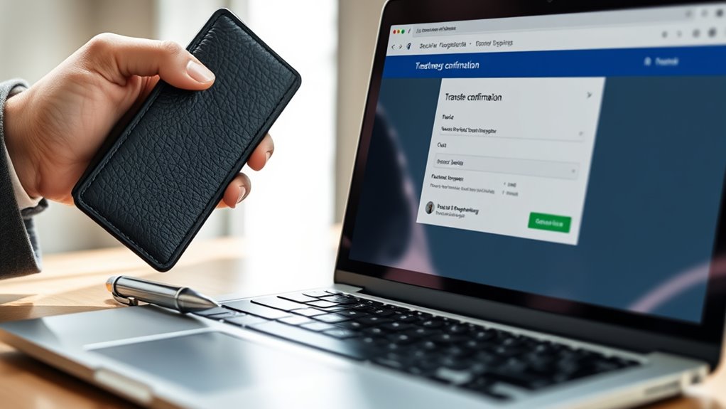Yes, you might face restrictions when transferring funds to certain countries. Some nations have sanctions, embargoes, or strict currency controls that limit or prohibit transfers. Always check with your bank or financial institution beforehand, and review your country’s regulations. You could also consult international financial guidelines to guarantee compliance. Planning ahead helps you avoid delays or legal issues, making your transfer smoother and more secure.