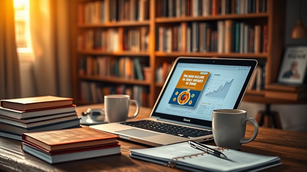 Writing and selling ebooks is a smart way to reach a global audience and earn income. Start by choosing a niche or topic you’re passionate about, then craft quality content that appeals to your target readers. Use popular platforms like Kindle Direct Publishing and diversify your sales channels for better reach. Focus on creating engaging, valuable ebooks, and optimize your marketing efforts. Keep exploring this guide to discover the next steps to turn your writing into revenue.