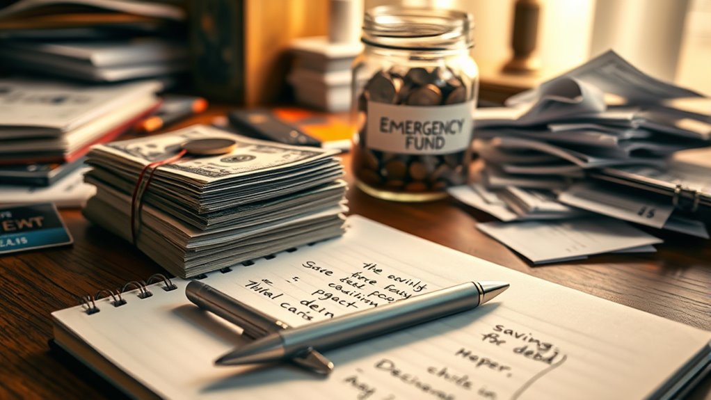 Think of your financial journey like steering a ship through calm and stormy seas. Building an emergency fund is like securing your lifeboat, ready for sudden storms, while paying off debt is steering your ship toward calmer waters. Ideally, you want both, but if you must choose, prioritize creating that safety net first. That way, when rough waters come, you’ll be anchored securely, and your voyage can continue smoothly toward financial stability.