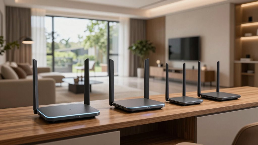 In 2026, I recommend the TP-Link Deco X55 AX3000, Amazon eero 6, TP-Link Deco XE70 Pro, TP-Link Deco 7, and NETGEAR Orbi 770 for large apartments. These systems offer extensive coverage, support many devices, and use the latest Wi-Fi standards like Wi-Fi 6E and WiFi 7. They’re easy to set up, improve signal strength across multiple floors, and include security features. Keep listening to discover more about which one might be best for your space.