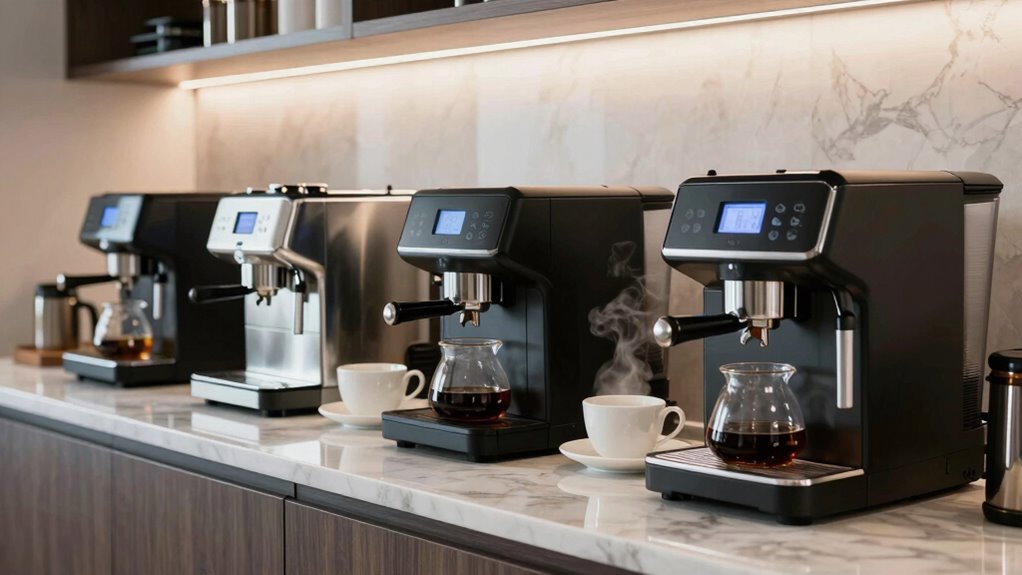 Choosing the right coffee maker for your shared office space can make all the difference. Whether it’s a sleek single serve or a robust 12-cup model, finding the right fit guarantees everyone stays energized and happy. Remember, a well-chosen coffee maker is an investment in productivity and camaraderie. As the saying goes, “A good cup of coffee is the foundation of a good day,” so choose wisely and enjoy the boost!