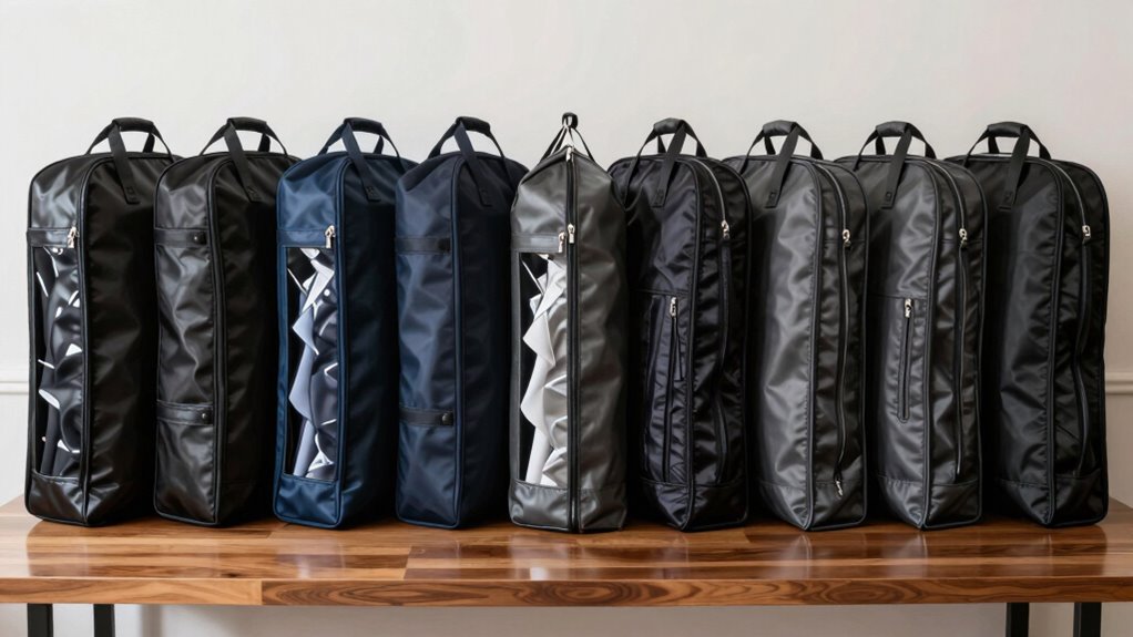 If you’re searching for the 15 best premium garment bags for frequent travel in 2026, I’ve got you covered. These top picks combine versatility, durability, and travel-friendly features like lightweight design, multiple compartments, and wrinkle prevention. From convertible duffel styles to wheeled luggage with hanging options, they’re perfect for organizing clothes and essentials on the go. Want details on the standout features and what makes each one special? Keep exploring; you’ll find everything you need to make the best choice.