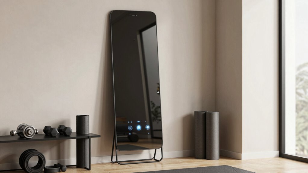 If you’re considering a smart fitness mirror for your small apartment, remember that space-saving designs and versatile features are key. Did you know that over 60% of city dwellers prefer compact, multi-functional workout equipment? Choosing the right mirror can transform your space into a personal gym without sacrificing style or room. With so many great options available, you’re bound to find one that fits your needs—and keeps you motivated to stay active every day.